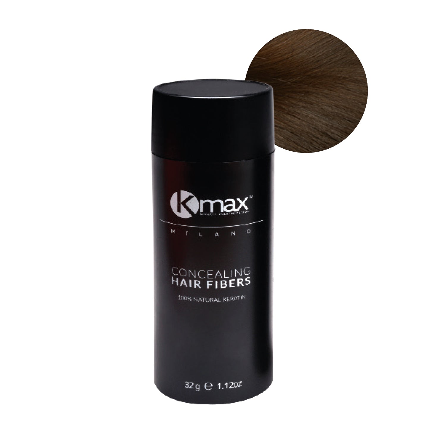 Kmax Hair Fibers are revolutionary finely textured Keratin fibers that bind electrostatically to your existing thinning, fine and semitransparent hair, producing an incredible thickening effect in a matter of seconds and concealing the shiny areas of the scalp.